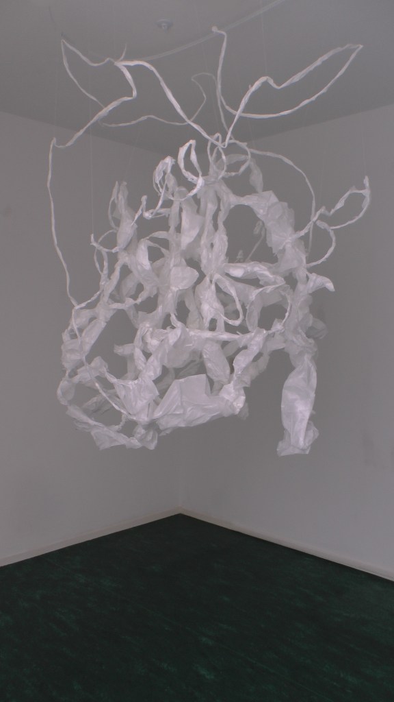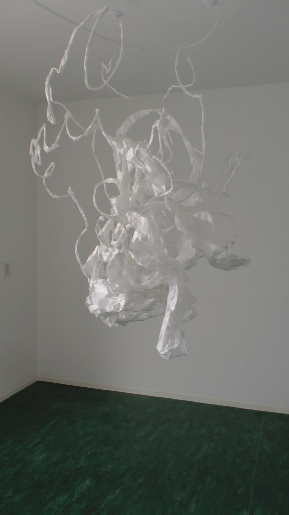 ‘Losmaken’ is een groot hangend object, gemaakt van japans kozoline-papier, dat bestaat uit 25% kozo en 75% pulp. Het papier is om ijzerdraad gewikkeld.